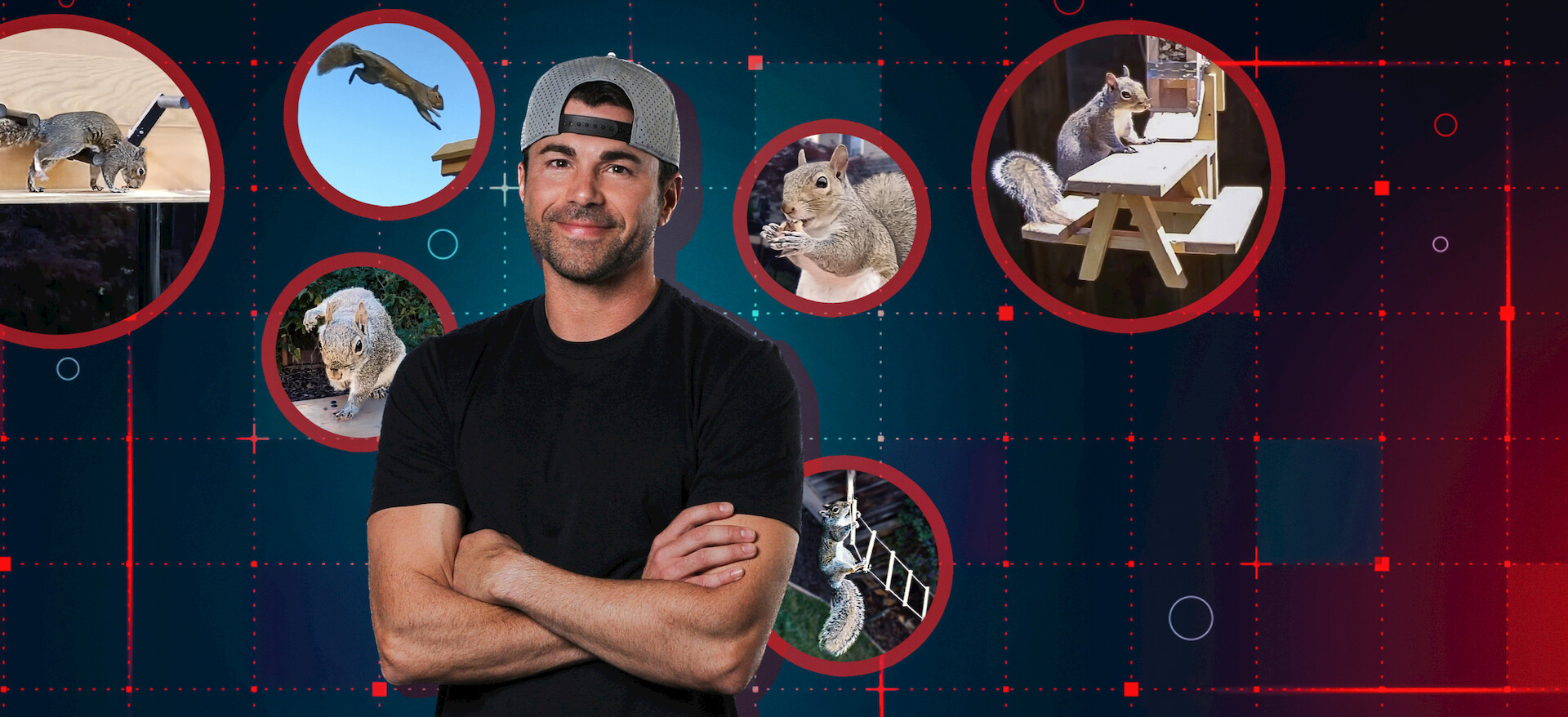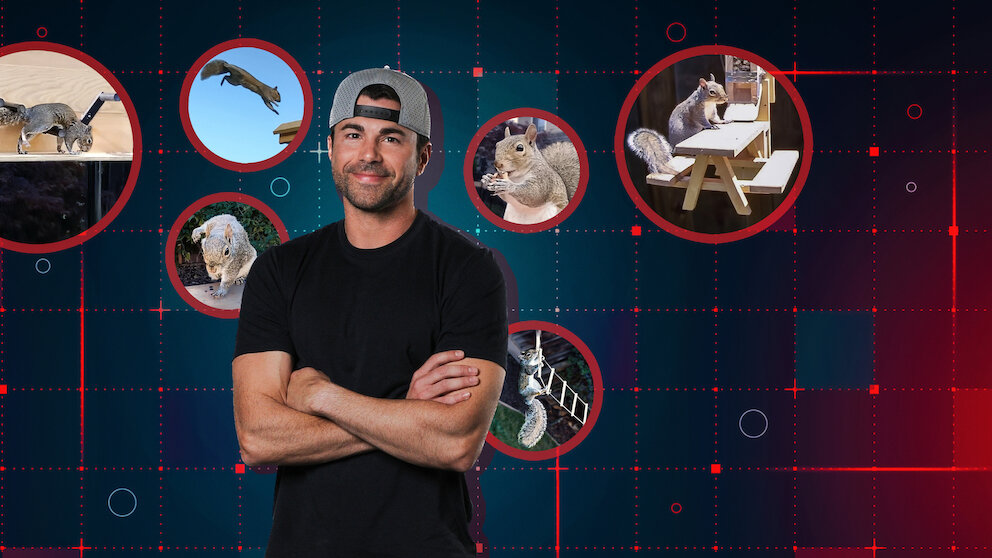 يعزّز "مارك" صعوبة لعبة مسار العقبات في فناء منزله الخلفي لإبعاد أربعة سناجب سارقة عن خزنة مليئة ببذور الطيور ومخزون هائل من الجوز.