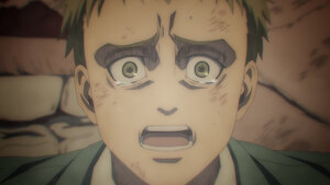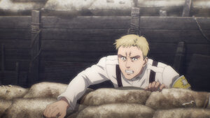 A young Eldian soldier awakens on the battlefield and is carried back to the trenches, where his comrades remind him what is at stake in this war.