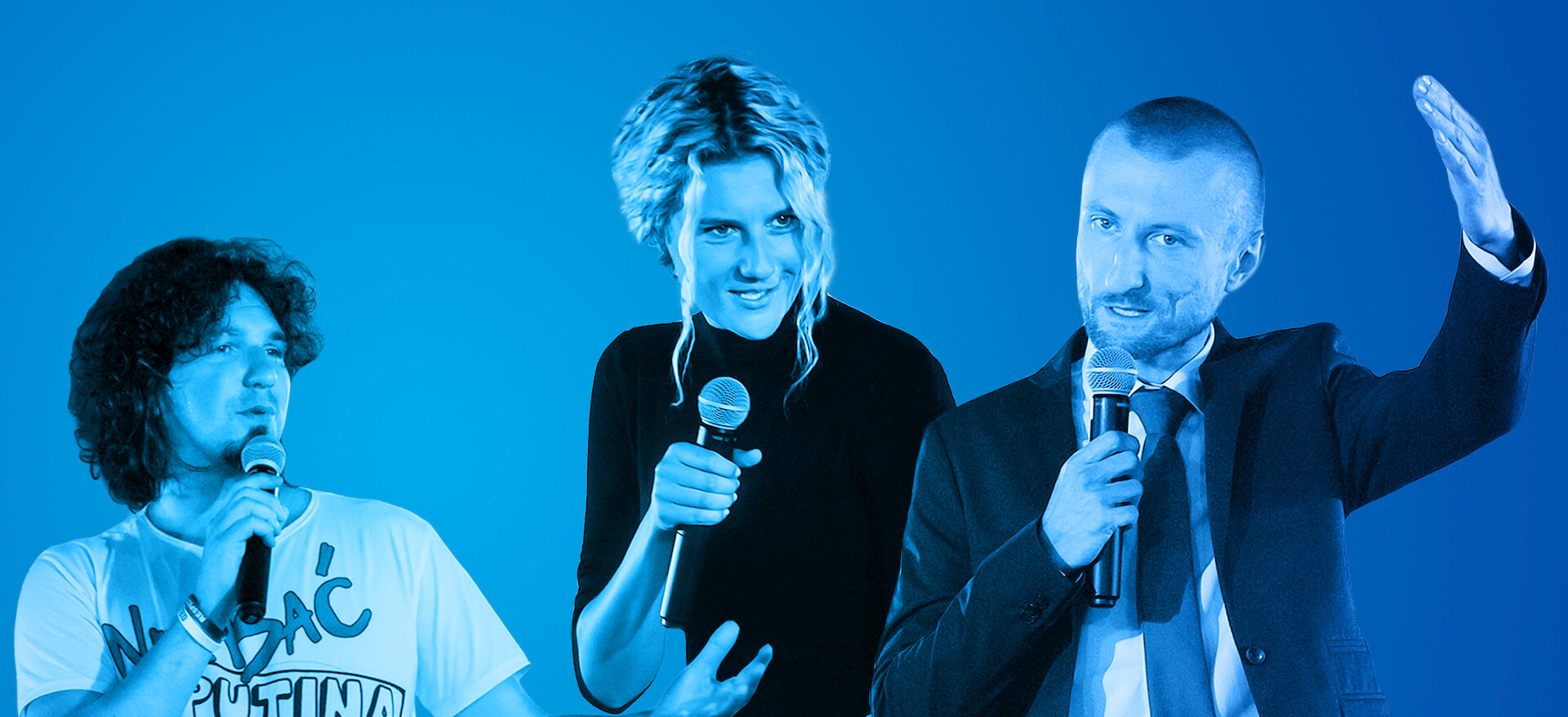 Comedians Mariusz Kałamaga, Karol Kopiec and Wiolka Walaszczyk deliver an eclectic and energetic stand-up show at Klub Hybrydy in Warsaw.