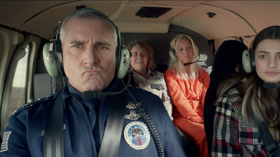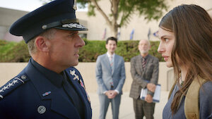 Armed with weapons that are less than intimidating, Space Force soldiers — led by General Naird — play war games with their Air Force rivals.