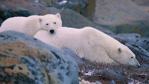 Los osos polares deben enfrentar los cambios estacionales de la helada y el deshielo en la bahía de Hudson, Canadá, y algunos se vuelven creativos a la hora de conseguir comida.