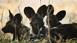 En la llanura que rodea el río Zambezi, una cachorra de perro salvaje aprende a trabajar en equipo con su manada para alimentarse y mantenerse a salvo de las hienas.